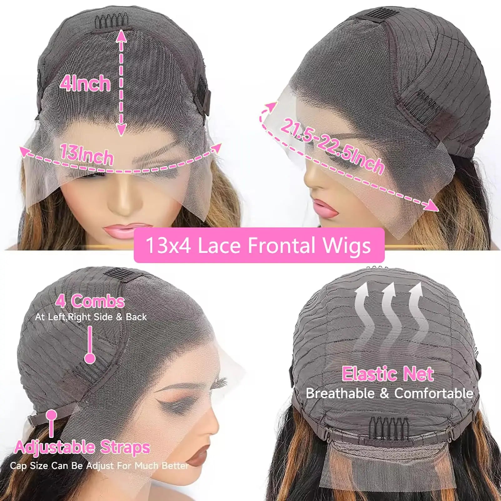1B/27 Body Wave 13x4 Lace Frontal Highlight Wig Human Hair Brazilian 200 Density 30 Inch Ombre Blonde Colored Human Hair Wigs