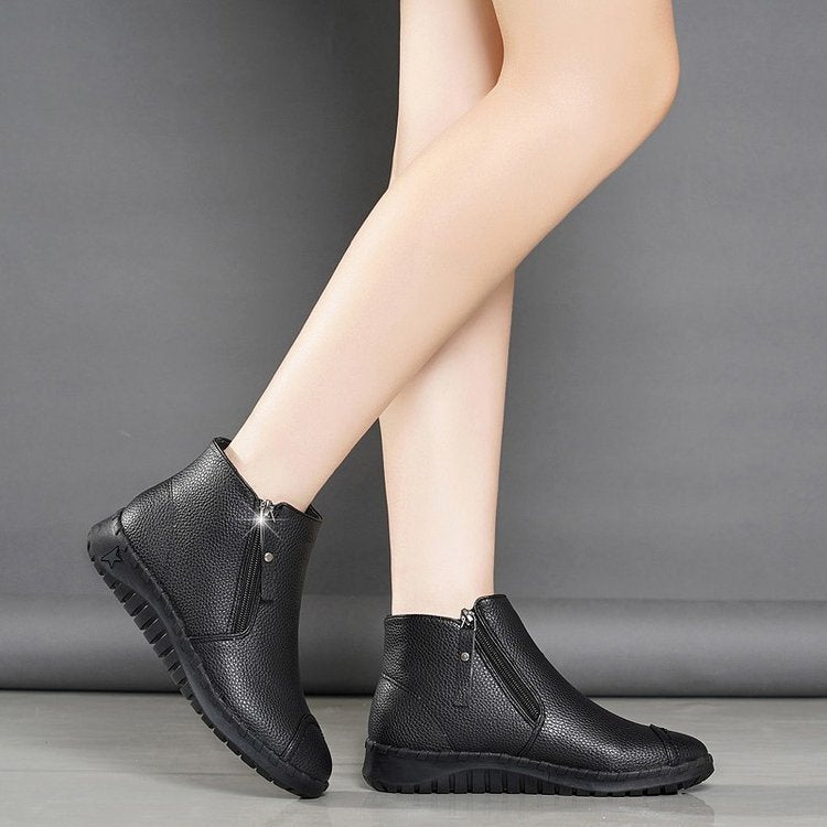 New Winter Mother's Cotton Shoes Short Boots Soft Sole Flat Heel
