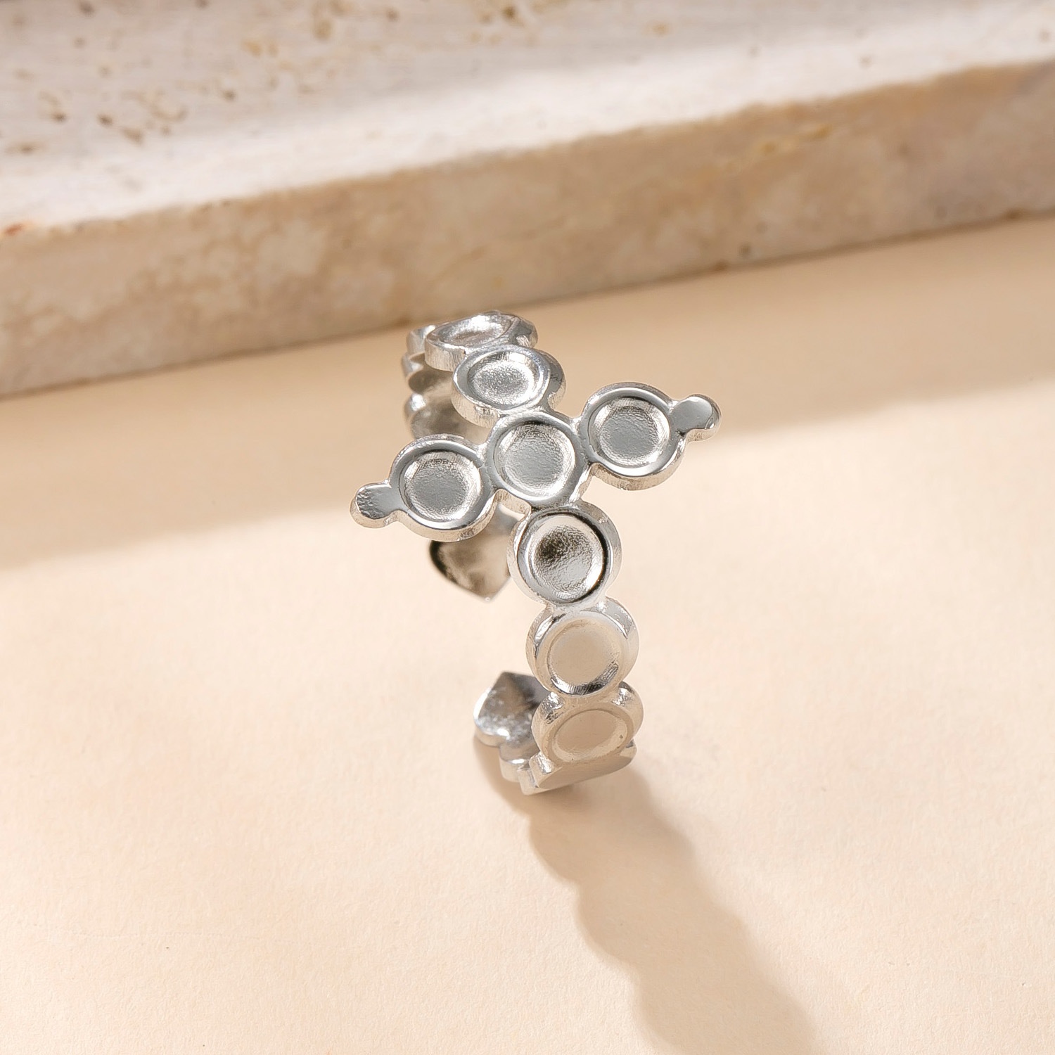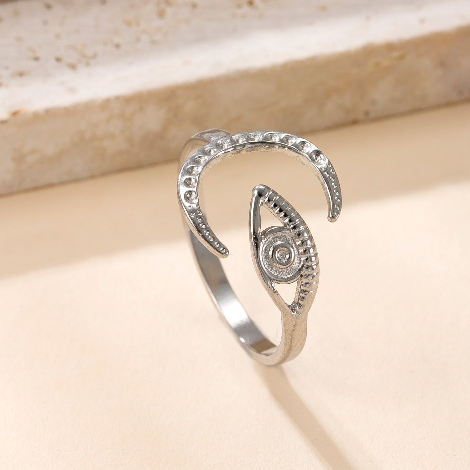 Stainless Steel Ring Oil Pressure Hollow Star Moon Open Ring Female