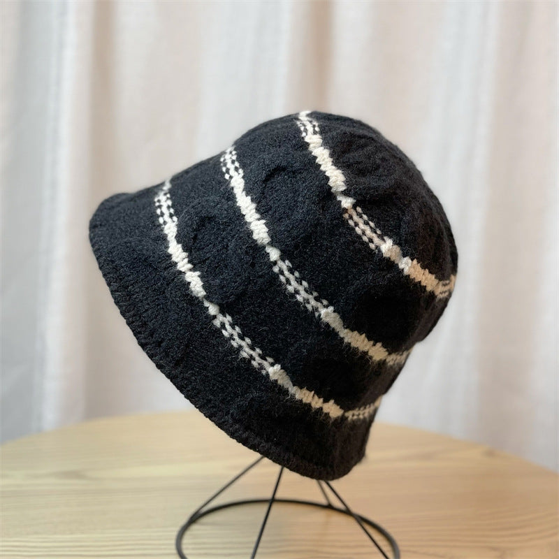 Wool Knitted Bucket Hat For Women Autumn And Winter